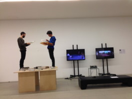 “Ação/Decisão” (“Action/Decision”) is an exhibition which shows what is happening. The authors, artists or a collective, will inhabit the CIAJG and perform their work at the museum. The general public is invited at any time during the first week to appreciate the work of Arthomem – Fernando Brito, Manuel João Vieira, Pedro Portugal and Pedro Proença – and next meet up with Vânia Rovisco’s work, and in the third part do likewise with João Fiadeiro and a group of his guest artists. The three parts of the exhibition will be followed by three film-makers who will create the catalog, this time in a filmed version, of works in which the relevance of transience, friction, decision-making and action are exacerbated and vigorously problematicized for being intrinsic to this experience.